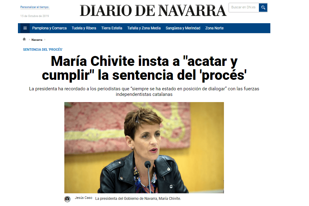 Las declaraciones de la propia Chivite respecto a la sentencia parecen indicar que no le gusta, que ella también hubiera preferido la impunidad, que piensa lo mismo que sus socios sólo que ella está obligada a acatar y respetar las sentencias aunque le gusten tan poco como a ellos.