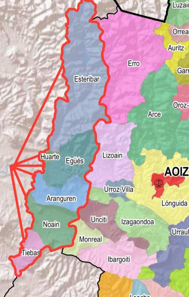 Incluyendo incluso el sur del Valle de Esteríbar (Olloqui, Arleta, Zabaldica e Iroz), frecuentemente considerado parte de la Cuenca.