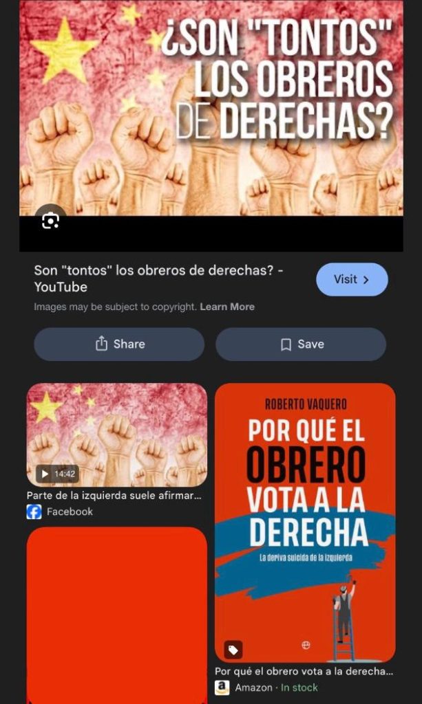 Evidentemente hay muchas razones más por las que se tiene una ideología conservadora, aunque seas de clase trabajadora como el patriotismo, la religiosidad, la moral…, pero los progres de la sección de comentarios que denigran a los proletarios de derechas porque se quedan con lo superficial, pues no leen mucho y cuando lo hacen se quedan con titulares y eslóganes en vez de con el análisis crítico por la complejidad de los matices y el trasfondo de la cuestión.